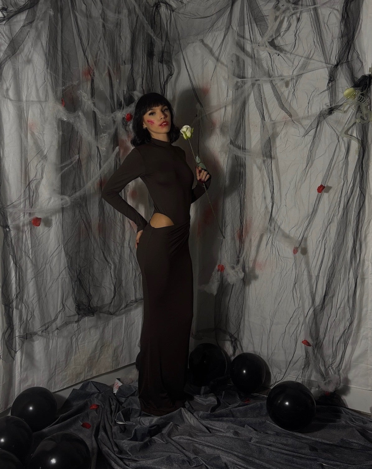 Questo Vestito dal design elegante e minimal. Realizzato in un tessuto fluido che segue le linee del corpo, presenta un piccolo spacco sul fianco che aggiunge un tocco femminile e discreto movimento. Perfetto per occasioni sia casual che più raffinate, unisce comodità e raffinatezza in un capo senza tempo.