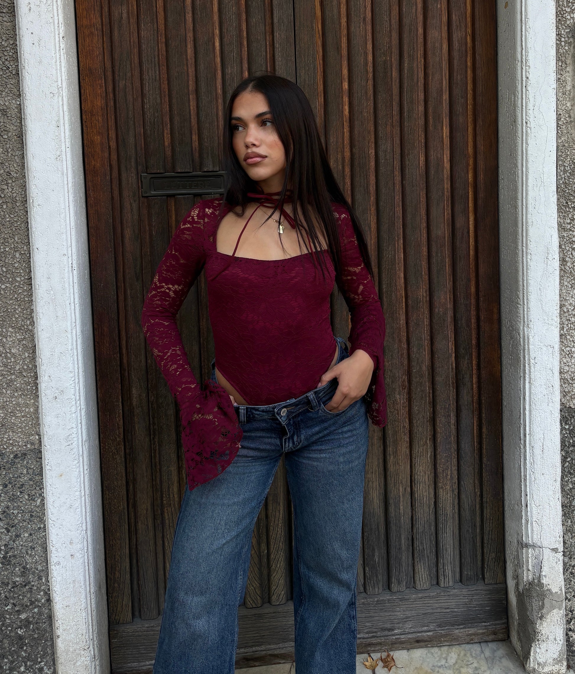 Sensuale ed elegante, questo body in pizzo è un capo iconico che unisce raffinatezza e femminilità. Realizzato in pizzo delicato, gioca con trasparenze sofisticate che esaltano le forme con grazia e discrezione. Il collo regolabile con dettaglio annodabile aggiunge un tocco distintivo, permettendo di adattare il look a seconda dell’occasione: più romantico se chiuso, più audace se lasciato aperto. Un body che fonde eleganza e modernità, pensato per chi ama distinguersi con stile.