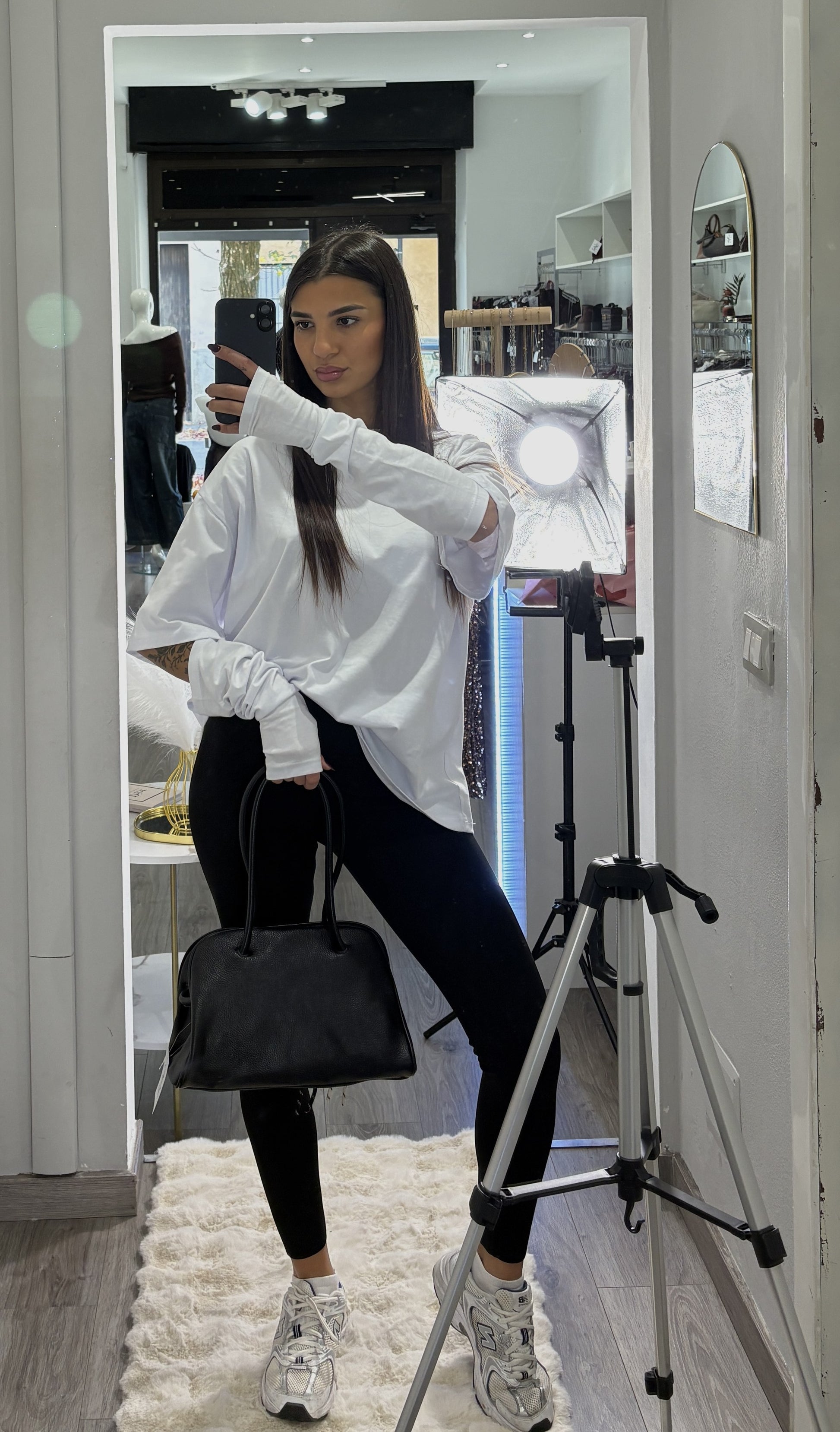 Questa t-shirt oversize unisce stile e originalità con un dettaglio unico: un guantino attaccato direttamente alla manica. E' realizzata in cotone, offre una vestibilità ampia e comoda, perfetta per chi ama un look casual ma distintivo. Il guantino, coordinato al colore della maglia, può essere indossato per coprire la mano o lasciato ripiegato come elemento decorativo, trasformando la t-shirt in un capo versatile e creativo. Ideale per streetwear, layering o semplicemente per aggiungere un tocco di originalità al tuo guardaroba quotidiano.